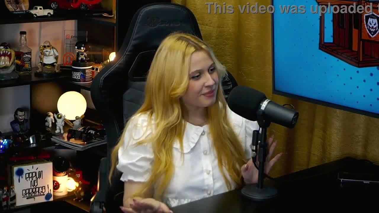 Why is this blonde latina teen with big tits and ass on all fours showing pussy in tiny panties during podcast?