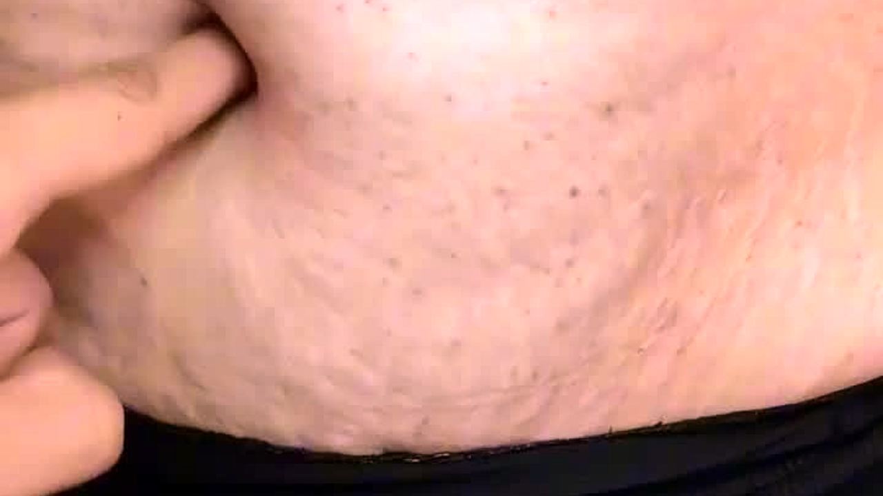 Curious hands explore latina milf's soft belly in fetish massage