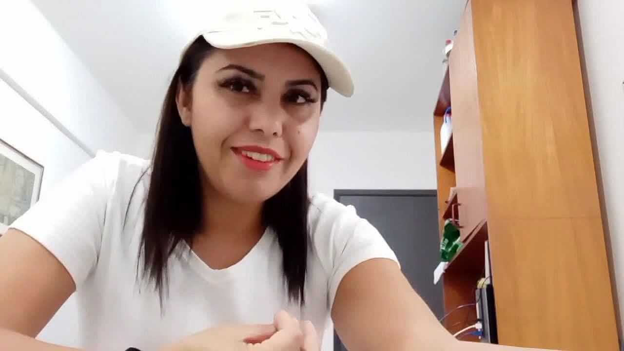 i busty colombian tranny masturbating my big tits and cock on webcam solo